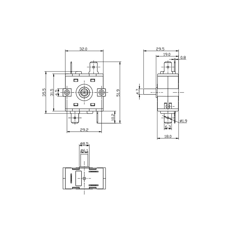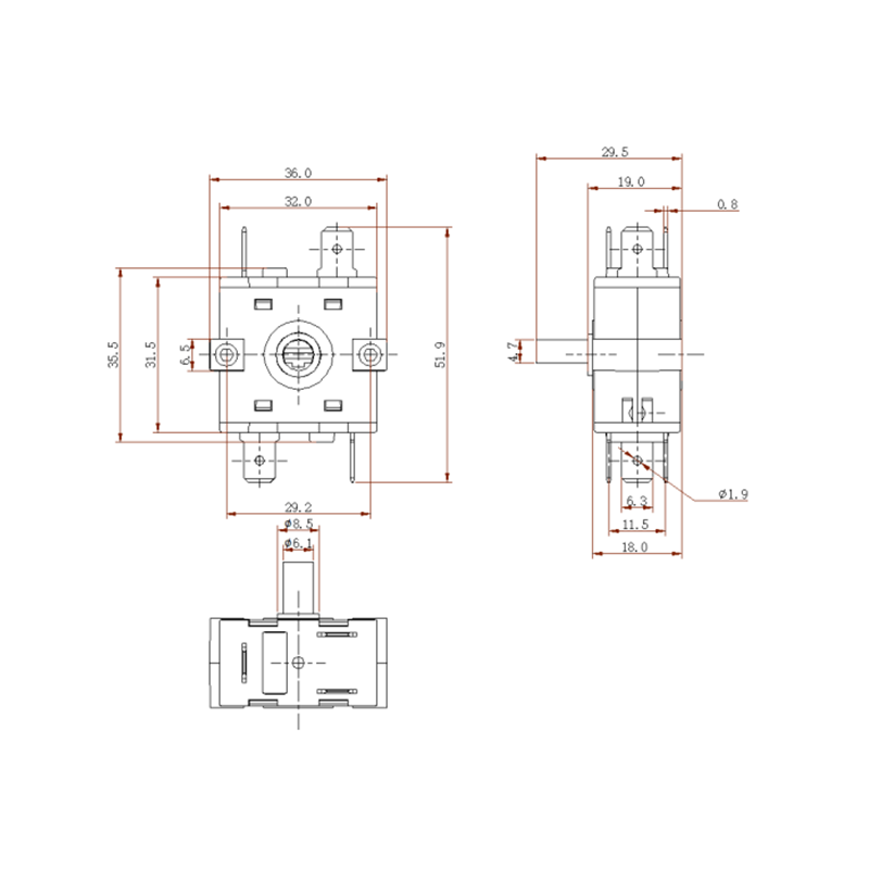 Çalışma Prensibi: Anahtar, kullanıcının dahili rotor kontaklarını sabit stator kontaklarına sırayla bağlanmaya yönlendiren harici düğmeyi döndürmesiyle çalışır, böylece devre durumunu değiştirir ve fonksiyon konumunu seçer. Bu tasarım net bir özelliğe sahiptir Kilit Mekanizması mükemmel olmasını sağlamak dokunsal his ve geri bildirim operasyon sırasında.