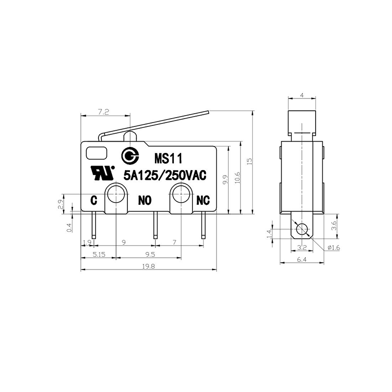 MS11 mikro anahtar, endüstriyel kontrol, ev aletleri, otomotiv elektroniği, tıbbi ekipman güvenlik sistemleri ve diğer alanlarda yaygın olarak kullanılan, yüksek hassasiyetli, yüksek güvenilirliğe sahip bir mikro anahtar serisi ürünüdür. Bu anahtar serisi, harici mekanik kuvveti veya tahrik çubuğu boyunca yer değiştirmeyi algılayan, kontakların hızlı anahtarlanmasını sağlamak için dahili yay mekanizmasını tetikleyen ve kararlı devre anahtarlaması ve hızlı yanıt sağlayan anlık bir hareket mekanizmasını benimser.