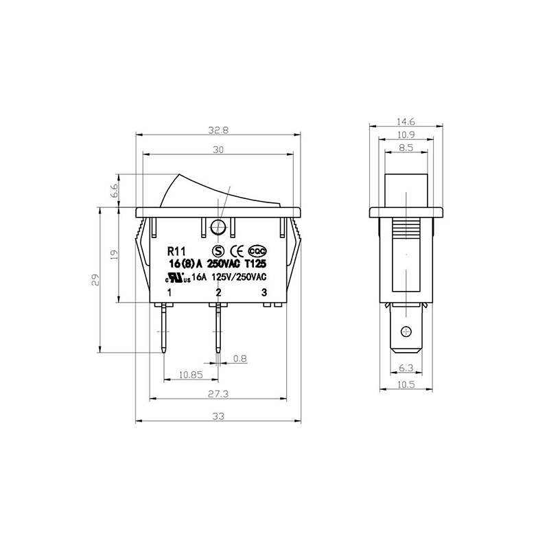 16(8)A 250VAC T125 1E4