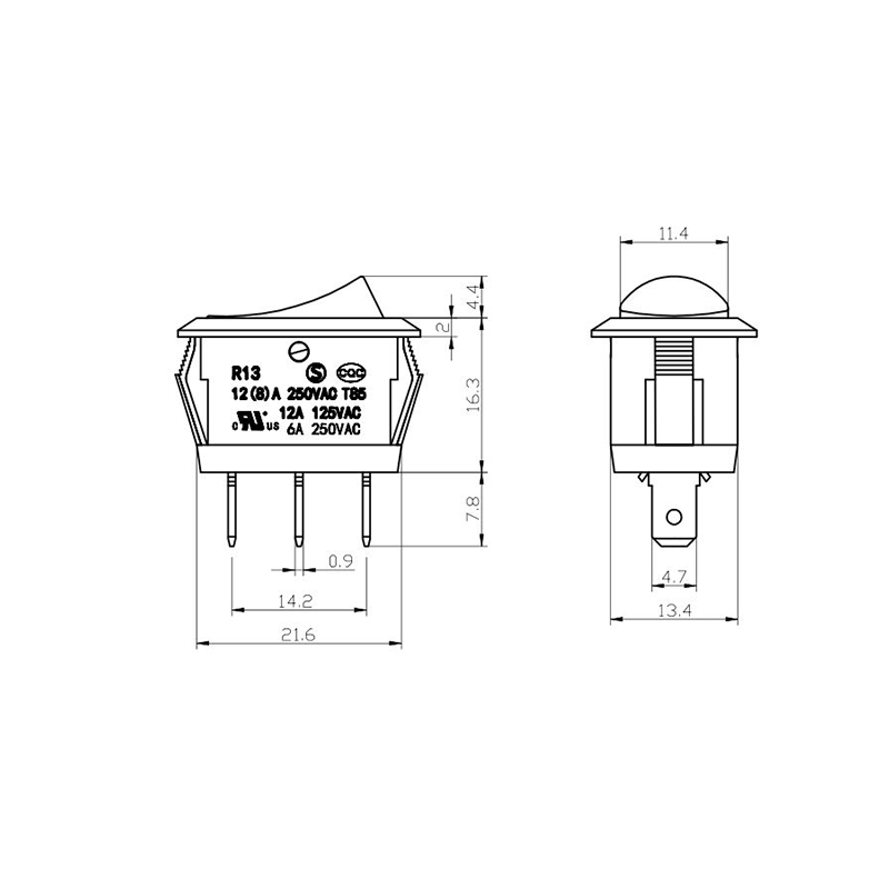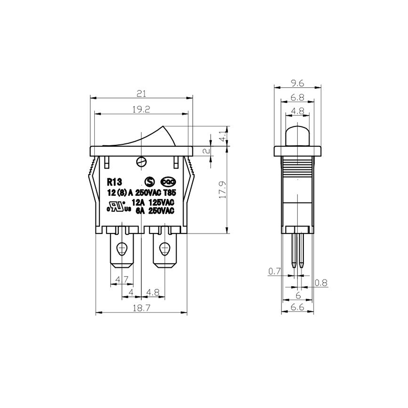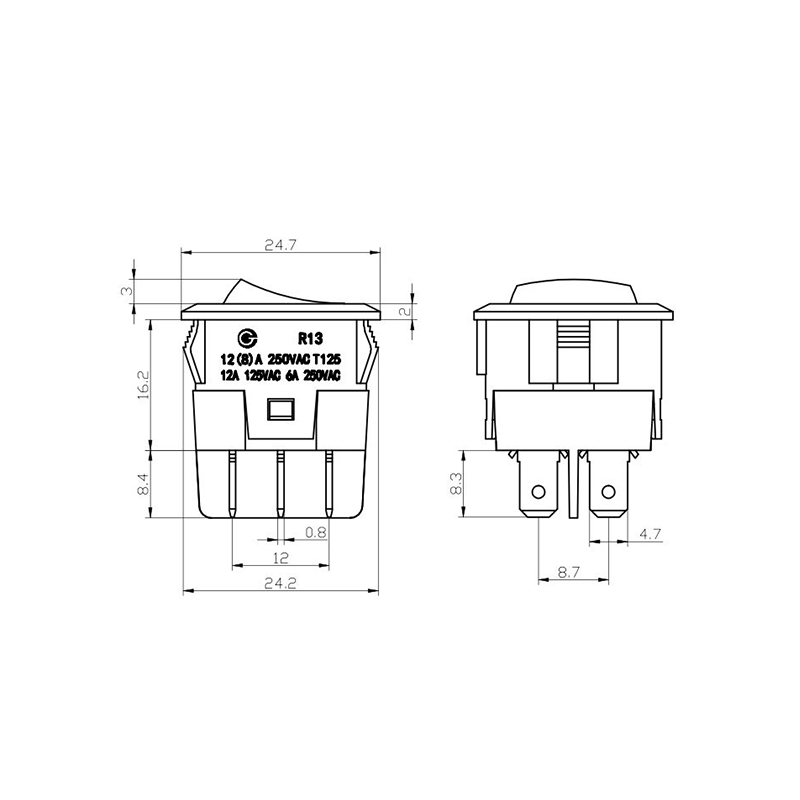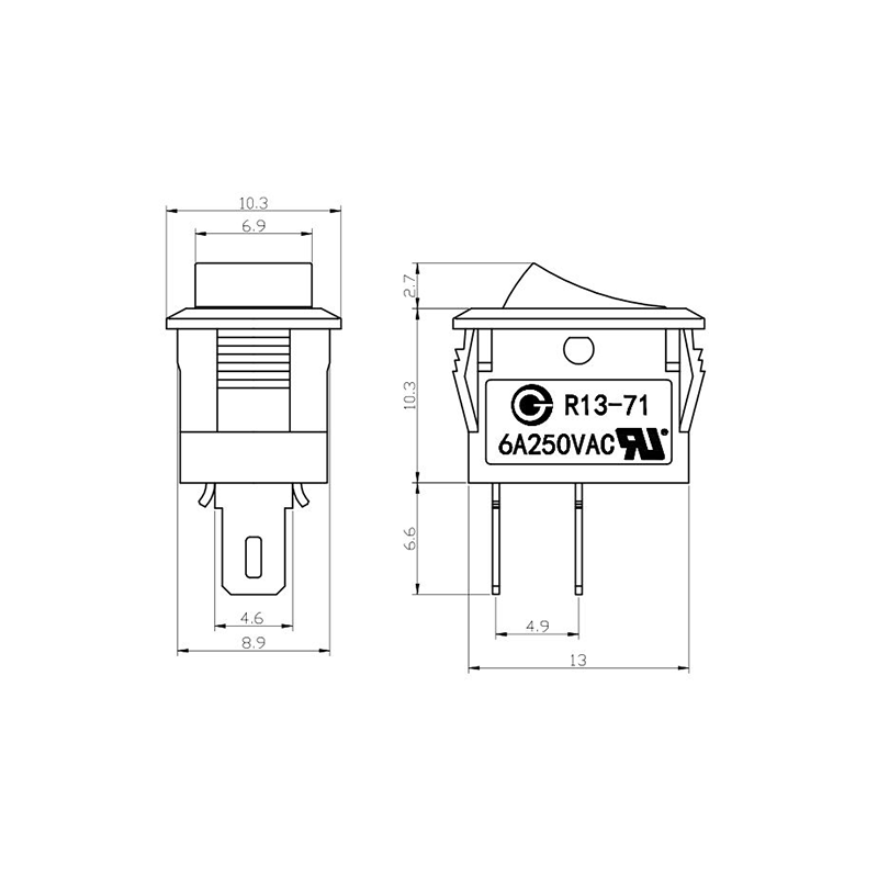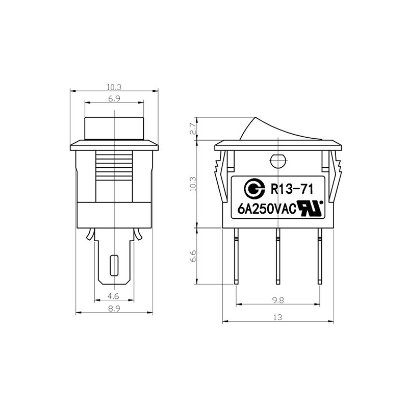 İşlevsellik açısından R13-13 serisi, çeşitli elektrik tasarımı gereksinimlerini karşılamak için SPST (Tek Kutuplu Tek Atışlı) ve SPDT (Tek Kutuplu Çift Atışlı) devre konfigürasyonlarını destekleyen hem 2 pinli hem de 3 pinli terminal düzenleri sağlar. Aktüatör üzerindeki net "0/1" işaretleri kullanımı kolaylaştırırken siyah beyaz renk seçenekleri de nihai ürün tasarımıyla görsel tutarlılık sağlar.